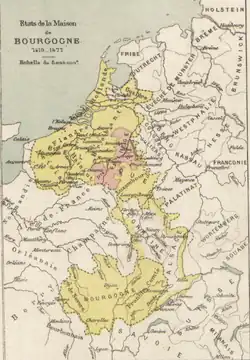 V té době se Nizozemí skládalo ze 17 provincií (Brabantsko, Limbursko, Lucembursko, Geldry, Artois, Henegavsko, Flandry, Namur, Holandsko, Zeeland, Zutphen, Antverpy, Frísko, Mechelen, Utrecht, Overijssel a Groningen).[1] Nejvýznamnější provincií byly Flandry s centrem v Bruggách a Gentu a Brabantsko s centrem v Bruselu, de facto hlavním městem Nizozemí.