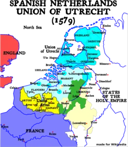 A tak stále v průběhu Nizozemské revoluce dne 23. ledna 1579 uzavřelo 7 severních protestantských provincií tzv. Utrechtskou unii. Byla to spojenecká koalice severonizozemských protestantských provincií (Holland, Zeeland, Frísko, Utrecht, Geldern, Groningen) a většiny brabantských a flanderských měst v době nizozemské revoluce, vytvořená 23. ledna 1579 v Utrechtu. Text sepsal pozdější významný státník Johan van Oldenbarnevelt. Ostatní provincie se přidaly k arraské unii.