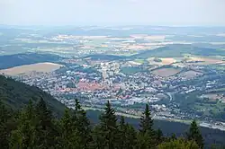 Ještě v závěru 19. století bylo středověké město obehnáno hradbami.[13] Díky železnici však bylo možné rozvíjet průmysl (byla zde otevřena továrna na telegrafní součástky) a tím pádem umožnit i populační růst města. Vybudovány byly také některé stavby, které byly pro moderní město nezbytné – např. gymnázium, nemocnice apod. Postupně se přidaly některé další průmyslové podniky, jako např. cihelna nebo závod na malování skla. Značným způsobem se rozšiřovala předměstí okolo původního historického centra města.