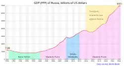31. prosince 1999 prezident Jelcin oznámil svůj odchod z politiky a pověřil výkonem prezidentských pravomocí předsedu ruské vlády Vladimira Putina. Ten vyhrál v prezidentských volbách v březnu 2000 a stal se tak druhým prezidentem Ruska. Mandát obhájil v roce 2004 a opakovaně se čtyřletou přestávkou i roku 2018. Putinovi se podařilo stabilizovat ekonomiku a státní správu, zato silně omezil demokratické svobody i nezávislý tisk a řada kritických novinářů byla zavražděna. Hospodářství zůstává závislé na vývozu nafty, plynu a zbraní.