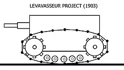 V roce 1903 předložil francouzský kapitán Léon Levavasseur francouzskému ministerstvu války projekt samohybného děla (canon autopropulseur), což byla zřejmě první představa konstrukce bojového vozidla známeho jako tank. Projekt představoval 75mm dělo umístěné v ochranné karoserii z ocelových plátů, jež se pohybovalo na housenkových pásech,[1][2] a poháněl je zážehový motor o výkonu 80 koní. Posádku měli tvořit 3 muži, dělo si vezlo vlastní zásobu střeliva a mělo být schopno jízdy v terénu. Projekt byl po dlouhém rozvažování zamítnut v roce 1908, poté co vešel ve známost úspěch pásového tahače britského inženýra Davida Robertse.[2] Skutečným „otcem“ prvního francouzského tanku se tak o několik let později stal Jean Baptiste Eugène Estienne.[3]