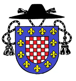 Štít stříbrno-červeně šachovaný, s modrým lemem, na němž je jedenáct zlatých lilií. Nad štítem duchovenský klobouk černé barvy se dvěma střapci po každé straně černé barvy. Šachované pole v moravských zemských barvách je převzato ze znaku města Hranic, sídla děkanátu, lem s liliemi odkazuje na znak premonstrátského řádu, jehož klášteru na Hradisku původně Hranice patřily.