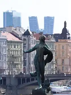 ![]() Dětský ostrov, severní špice se sochou Vltavy, v pozadí Jiráskův most | |