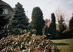 - Chamaecyparis lawsoniana 'Elwoodii' vysoký 1,5–2 m, modrozelené olistění, kuželovitý, hustý vzrůst, roste pomalu.