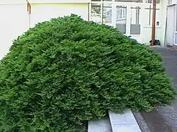 - Chamaecyparis pisifera 'Squarosa' – vysoký až 5 m, široce pyramidální, šedomodré olistění.