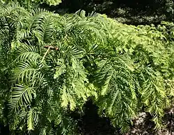 - světle zelené druhy a odrůdy, např. modřín opadavý (Larix decidua), kryptomerie japonská (Cryptomeria japonica), tisovec dvouřadý (Taxodium distichum) aj.,