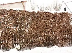 - ↑ Sníh může být též příčinou rozlámání dřevin. Proto se doporučuje některé druhy a odrůdy zbavit větší sněhové pokrývky, zvláště jalovec čínský (Juniperus chinensis) 'Pfitzeriana' a 'Hetzii', jalovec virginský (J. virginiana) 'Tripartita', zerav západní (Thuja occidentalis) „Elwangeriana“ a jiné. Některé sloupovitá konifery trpí v důsledku sněhové pokrývky rozklesáváním, takže je vhodné preventivně na zimu stáhnout jejich větve proti rozklesávání (např. u jalovce obecného (Juniperus communis) 'Sueccica' a 'Hibernica', J. virginiana 'Burkii', J. chinensis 'Neaboriensis').