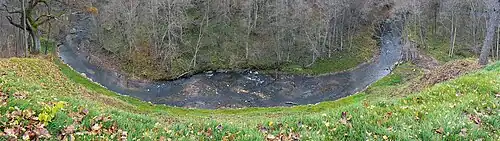 ![]() Sesuv břehu Dūkšty od „hradiště“ Bradeliškių piliakalnis | |