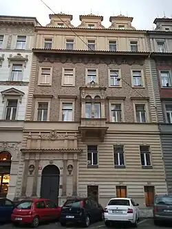 - ↑ a b PELC, Vít. Výzdoba pražských nájemních domů v poslední třetině 19. století a na počátku století dvacátého. Praha, 2007 [cit. 2015-08-24]. 117 s. Diplomová práce. Filozofická fakulta (FF) Univerzity Karlovy, Ústav pro dějiny umění. Vedoucí práce prof. PhDr. Roman Prahl, CSc.. s. 34–36. Dostupné online. [nedostupný zdroj]