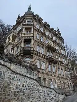 Jedná se o jeden z nejhonosnějších domů v Karlových Varech, který tvoří i významnou urbanistickou dominantu města. Nachází se na území Městské památkové zóny v ulici Pod Jelením skokem 362/5.[1][4]