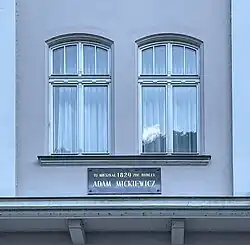 Pamětní deska na domě – upomínka na Adama Mickiewicze