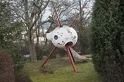 V zahradě domu je plastika – prolézačka – Sputnik, autora Zdeňka Němečka, z 60. let 20. století, která původně stála na dětském hřišti ve Stromovce, měla být jako nebezpečná zlikvidována, nakonec bylo povoleno ji novému majiteli (Rudolfovi Břínkovi) odvézt.[6][7]