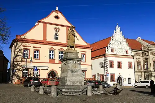 náměstí před domem, s pomníkem J. Žižky