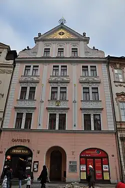- ↑ a b Ústřední seznam kulturních památek České republiky [online]. Praha: Národní památkový ústav [cit. 2017-07-18]. Identifikátor záznamu 152991 : městský dům Zlatý kříž. Památkový katalog. Hledat dokumenty v Metainformačním systému NPÚ [1].