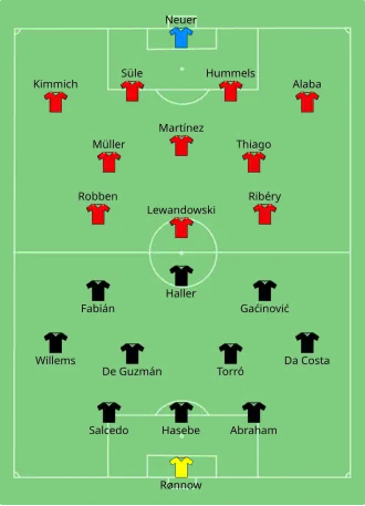 | Eintracht Frankfurt | 0 : 5 (0 : 2) | Bayern Mnichov | Commerzbank Arena, Frankfurt diváci: 51 500 rozhodčí: Marco Fritz |