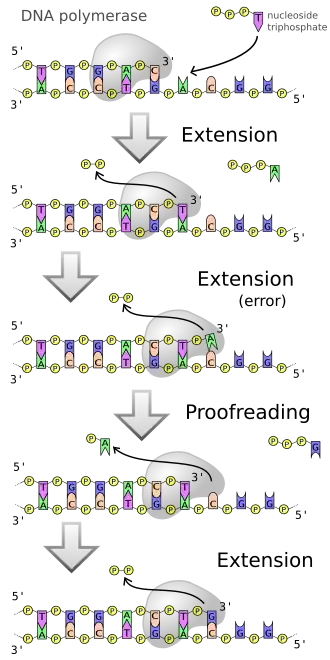 Některé DNA polymerázy jsou schopné opravy chyb vzniklých při replikaci. Když tyto polymerázy objeví chybný pár bází, vyjmou ho a nahradí správným.