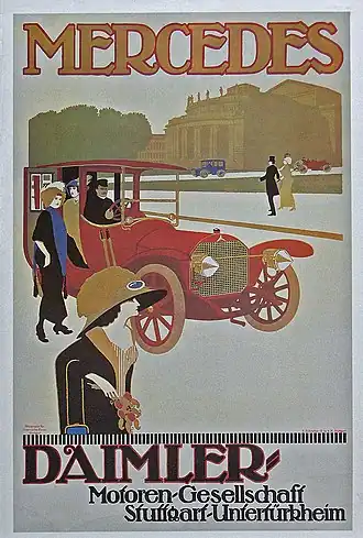 Automobilový trh v poválečném Německu zasaženém ekonomickou krizí krachoval, což DMG přinutilo ke spolupráci s hlavním soupeřem, společností Benz & Cie. Obě firmy se tak mohly podělit o náklady na výzkum a vývoj. Tato spolupráce posléze v roce 1926 vyústila ve sloučení obou firem. Vznikla tak nová společnost Daimler-Benz AG. Její automobily nesly od té doby značku Mercedes-Benz a jejich ochrannou známkou se stala „trojcípá hvězda představující ,zemi, vodu a vzduch‘ obkroužená tradičním vavřínovým věncem Karla Benze“.[1]