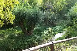 Údolím potoka je vedena jednak naučná stezka, jednak železniční Trať 173, na níž se tu nachází zastávka Praha-Holyně. Prochází jím turistická značená cesta