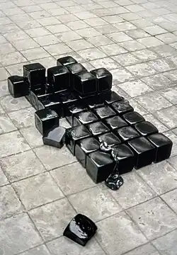 Narušování jindy pravidelné a přesné formy je patrné také na jednom ze zásadních objektů s názvem Pražská dlažba z roku 1985, které vzniklo v rámci 2. ročníku Mezinárodního sklářského sympozia v Novém Boru. Temná plocha nesourodých kostek se v některých místech neznatelně propadá do neznámé, jen tušené hlubiny; jako by znejišťovala naše kroky, které vedou důvěrně známými místy, po cestách, jimiž procházíme i klopýtáme.