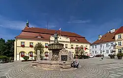Tržní náměstí (Tadausze Kośczuszka) s radnicí, v pozadí kostel Panny Marie -