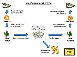 Pro platby se v transakcích obvykle používají bitcoiny[2], někdy v kombinaci se službou pro sušičky/mixování kryptoměny (tzv. Cryptocurrency tumbler)[73] pro větší anonymitu a PGP pro bezpečnou komunikaci mezi kupujícími a prodejci, a nejsou uloženy na stránce samotné.[74] Mnoho stránek používá bitcoin multisig[75] transakce s cílem zlepšit bezpečnost a snížit závislost na úschovách kryptoměny přímo na webu. Helix bitcoin tumbler nabízí přímou anonymní integraci plateb.[76]