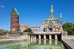 - Mathildenhöhe (Matyldina výšina) – zahradní kolonie domků umělců z období jugendstilu, s dominantní věží a kaplí[2]