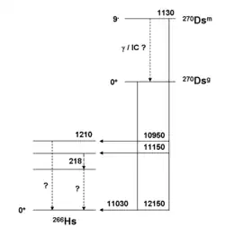 | 271Dsg,m | 1994 | 208Pb(64Ni,n) | 1,63 ms a 69 ms |