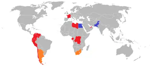 Jihoafrická republika: 5 IAI Nešer; všechny modernizovány na Atlas Cheetah[10]