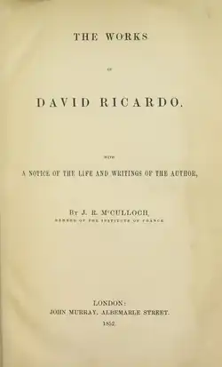 V tomto článku byl použit překlad textu z článku David Ricardo na anglické Wikipedii.