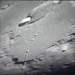 V zatopeném kráteru Davy Y o průměru 70 km lze nalézt pozoruhodný řetězec 23 malých kráterů v délce cca 50 km. Směřují ze středu kráteru k východo-severovýchodu, přičemž se jejich „dráha“ mírně stáčí. V roce 1974 byla 6 z nich přidělena neoficiální jména (pro účely NASA). Tato jména (viz seznam níže) byla posléze přijata Mezinárodní astronomickou unií jako oficiální.