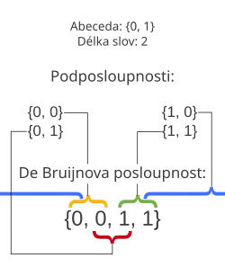 V tomto článku byly použity překlady textů z článků De-Bruijn-Folge na německé Wikipedii a De Bruijn sequence na anglické Wikipedii.
