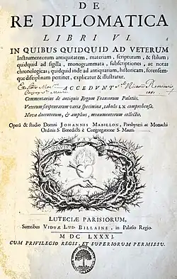 - ↑ a b ZOUHAR, Jakub. De re diplomatica libri sex by Jean Mabillon in Outline [online]. [cit. 2024-11-11]. Dostupné online.