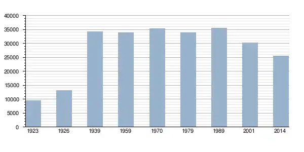 | 1923 | 1926 | 1939 | 1959 | 1970 | 1979 | 1989 | 2001 | 2014 | |