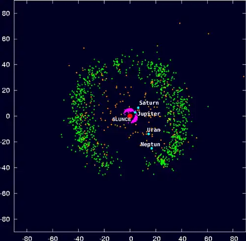 - ↑ Mezi ně v současnosti počítáme většinu planetek z vnitřních částí sluneční soustavy, většinu transneptunických objektů (TNO), komet a další malá tělesa.