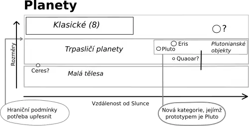 - ↑ a b IAU 2006 General Assembly: Result of the IAU Resolution votes. IAU Press release [online]. 2006-08-24 [cit. 2017-04-15]. Čís. iau0603. Dostupné v archivu pořízeném z originálu dne 2014-04-29. (anglicky)