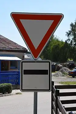 Značka dej přednost v jízdě označuje v silniční dopravě vedlejší pozemní komunikaci.