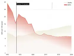 V důsledku poválečné modernizace Rumunska, vysokého podílu žen na pracovní síle a nízké životní úrovně se počet narozených dětí po roce 1950 výrazně snižoval a v roce 1966 dosáhl nejnižší zaznamenané úrovně. Rumunští představitelé interpretovali klesající počet narozených jako důsledek dekretu z roku 1957, který legalizoval potraty.[zdroj?]