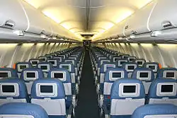 Ekonomická třída v kabině Boeingu 737-800 Delta Air Lines, 2010