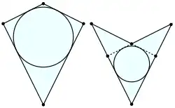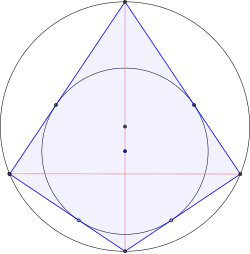 Jestliže úhly u vrcholů vedlejší úhlopříčky (β, δ) jsou pravé, řadíme jej mezi dvojstředové čtyřúhelníky (lze mu opsat i vepsat kružnici). [1]
