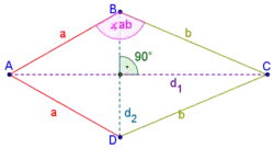 kde jsou délky jeho úhlopříček. Pokud jsou délky různých stran a úhel jimi sevřený, pak