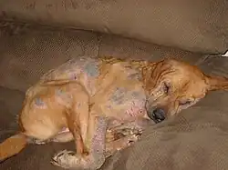 - Generalizovaná demodikóza způsobená iatrogenní nebo spontánní imunosupresí:vyskytuje se u starších psů a často následkem nějaké léčby (nejčastěji při léčbě nádorů, metabolických poruch nebo onemocnění jater).