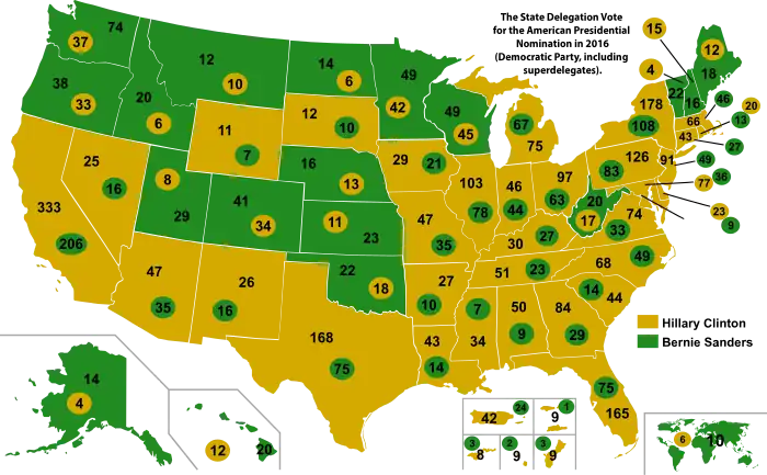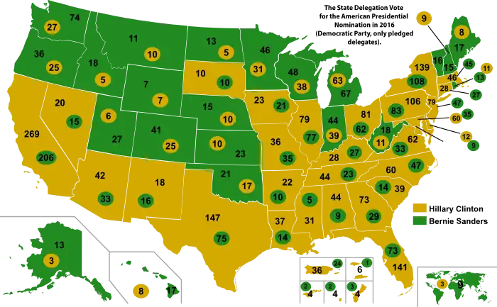 - ↑ a b Democratic Detailed Delegate Allocation – 2016 [online]. [cit. 2015-09-14]. Dostupné online.