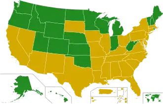 23 AK, CO, DA, HI, ID, IN, KS, ME, MI, MN, MT, NE, NH, ND, OK, OR, RI, UT, VT, WA, WI, WV, WY | ||
