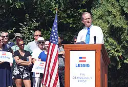 Americký profesor právní vědy na Harvardově univerzitě Lawrence Lessig oznámil v srpnu 2015 nečekaný záměr vstoupit do boje o prezidentskou kandidaturu, pokud jím založená průzkumná komise shromáždí milion dolarů do svátku Dne práce, jenž se v daném roce slavil 7. září.[55][56] Po dosažení tohoto cíle akademik oficiálně otevřel svou kampaň 9. září 2015 v newhampshirském Claremontu.[57][58] Hlavní stan kampaně sídlil v massachusettském Cambridge.[59]
