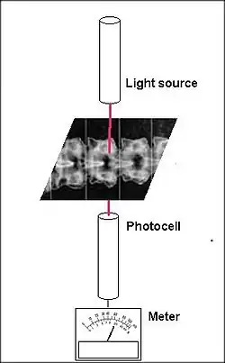 V tomto článku byl použit překlad textu z článku Denzitometria na slovenské Wikipedii.