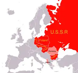 Po nastolení vlády ovládané rumunskou komunistickou stranou v roce 1945 se země brzy stala bezvýhradným sovětským satelitem. Rozhodnutí týkající se zahraniční a hospodářské politiky byla přijímána v Moskvě a loajálně prováděna místními komunisty. Období nezpochybnitelné sovětské nadvlády trvalo až do roku 1955.[11]