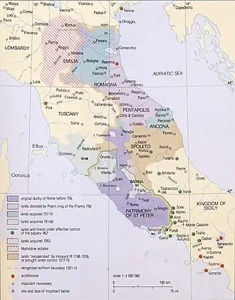 V dubnu roku 757 papež Štěpán II. zemřel a na jeho místo si Římané zvolili jeho bratra Pavla. Ten hned na počátku navázal dobré vztahy s franským králem Pipinem Krátkým. Zároveň podněcoval vévody ze Spoleta a Beneventa k neposlušnosti vůči Desideriovi. Ten roku 758 oba vévody porazil, Spoleto obsadil a správou Beneventa pověřil svého syna Adelchise. Zároveň vyjednával s byzantským císařem o podpoře svých územních nároků, odměnou mělo být pro Řeky obnovení Ravennského exarchátu.[1] Těm se zřejmě do konfliktu s papežem podporovaného Franky nechtělo, a tak Desiderius nakonec roku 760 přistoupil na dohodu s papežem Pavlem I. a většinu slíbených měst mu odevzdal (s výjimkou města Imoly, kterou mu vydal až roku 765).