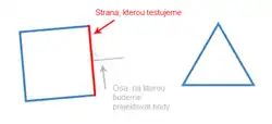 - Vybereme hranu a spočteme její normálový vektor, ten představuje osu, na kterou budeme provádět projekci.