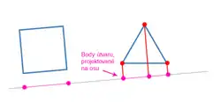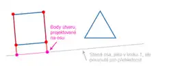 - Provedeme projekci všech bodů druhého polygonu na nalezenou osu.