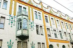 Budova vznikla v letech 1900 až 1902. Její nápadnou fasádu navrhl Ödön Lechner a vychází z budovy poštovní spořitelny v Budapešti. Inspirována byla maďarským lidovým uměním. Zelenomodro-oranžová barevná kombinace byla na svou dobu považována za odvážnou; na druhou stranu však byla do jisté míry populární, neboť se objevila i u řady dalších staveb v tehdejších Uhrách, např. na Raichelově paláci v Subotici. Budovu zdobí keramika ze závodu Zsolnay z Pécsi, má bohatě zdobené balkonové zábradlí, zábradlí na schodišti a kované vstupní dveře. Dům byl považován ve své době za velmi moderní, protože byty byly vybaveny koupelnou s vanou, což v té době nebylo příliš obvyklé. Do poloviny 80. let 20. století v budově sídlilo Loutkové divadlo.